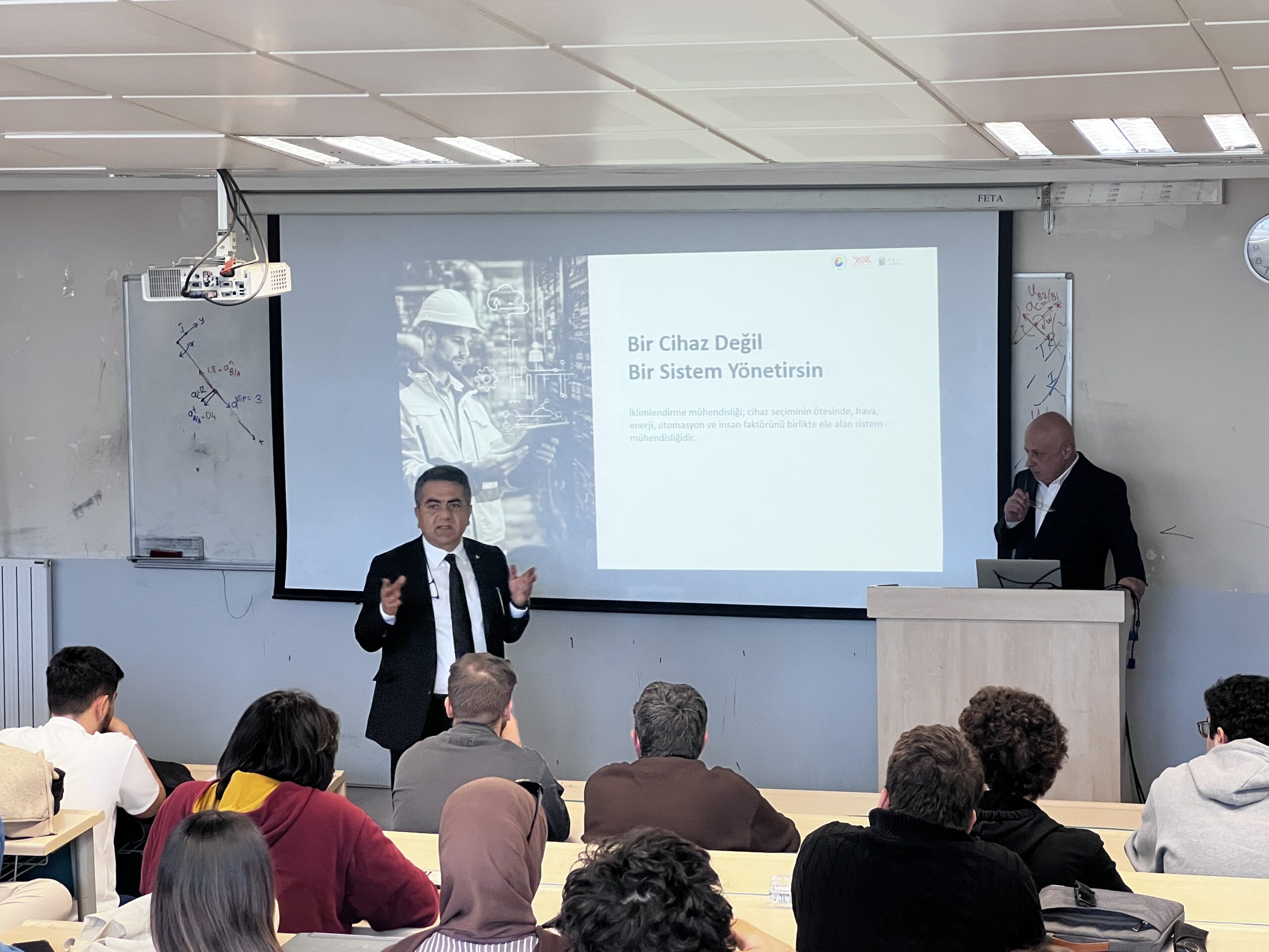 Yönetim Kurulu Başkanımız Mehmet Şanal ve Üntes VRF şirketimizin Genel Müdürü Yalım Atalay, TOBB İklimlendirme Meclisi, ISKAV, İSİB ve YÖK destekleri ile düzenlen Üniversite- Sanayi iş birliği projesi kapsamında Gazi Üniversitesi Makine Mühendisliği 1. sınıf öğrencileriyle bir araya geldi.